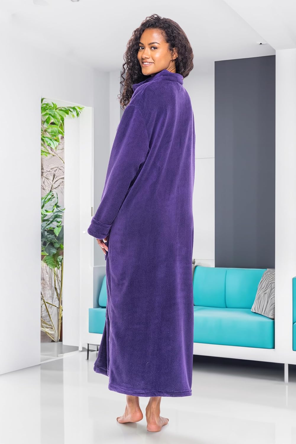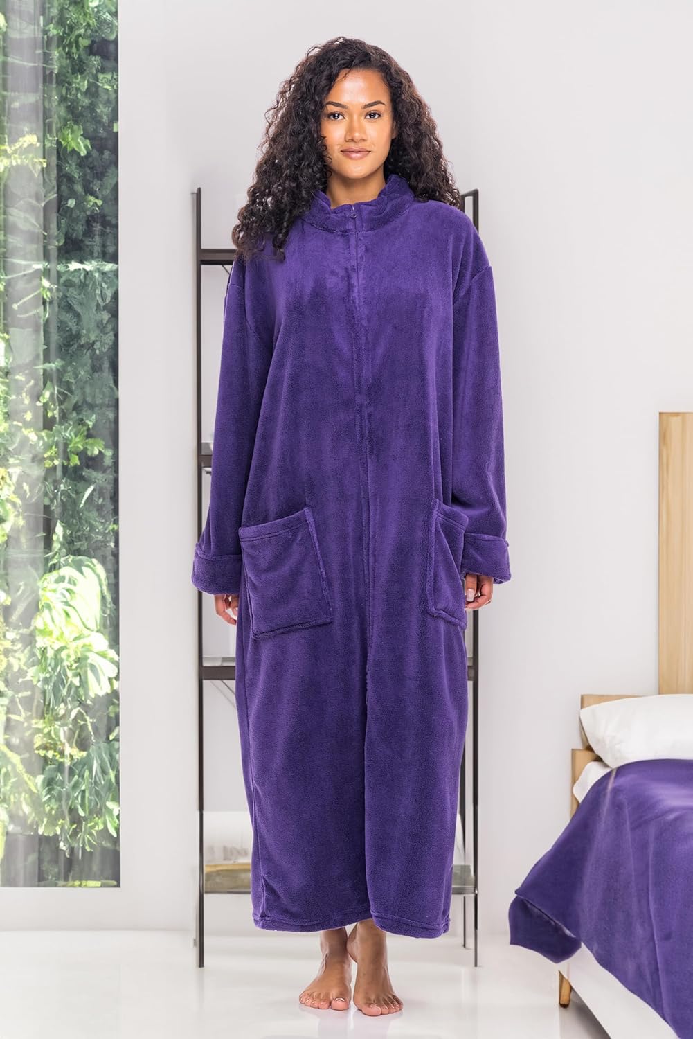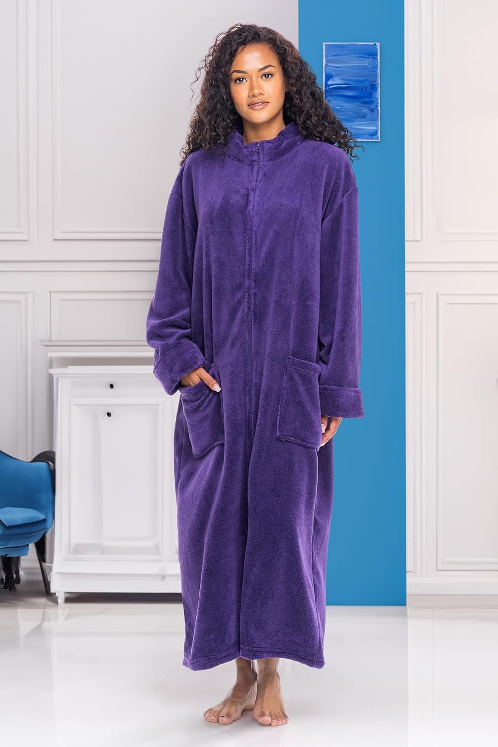 Alexander Del Rossa Long Zip Up Robes, Plush Zipper Robes for Plus Size, Housecoats Zipper Front