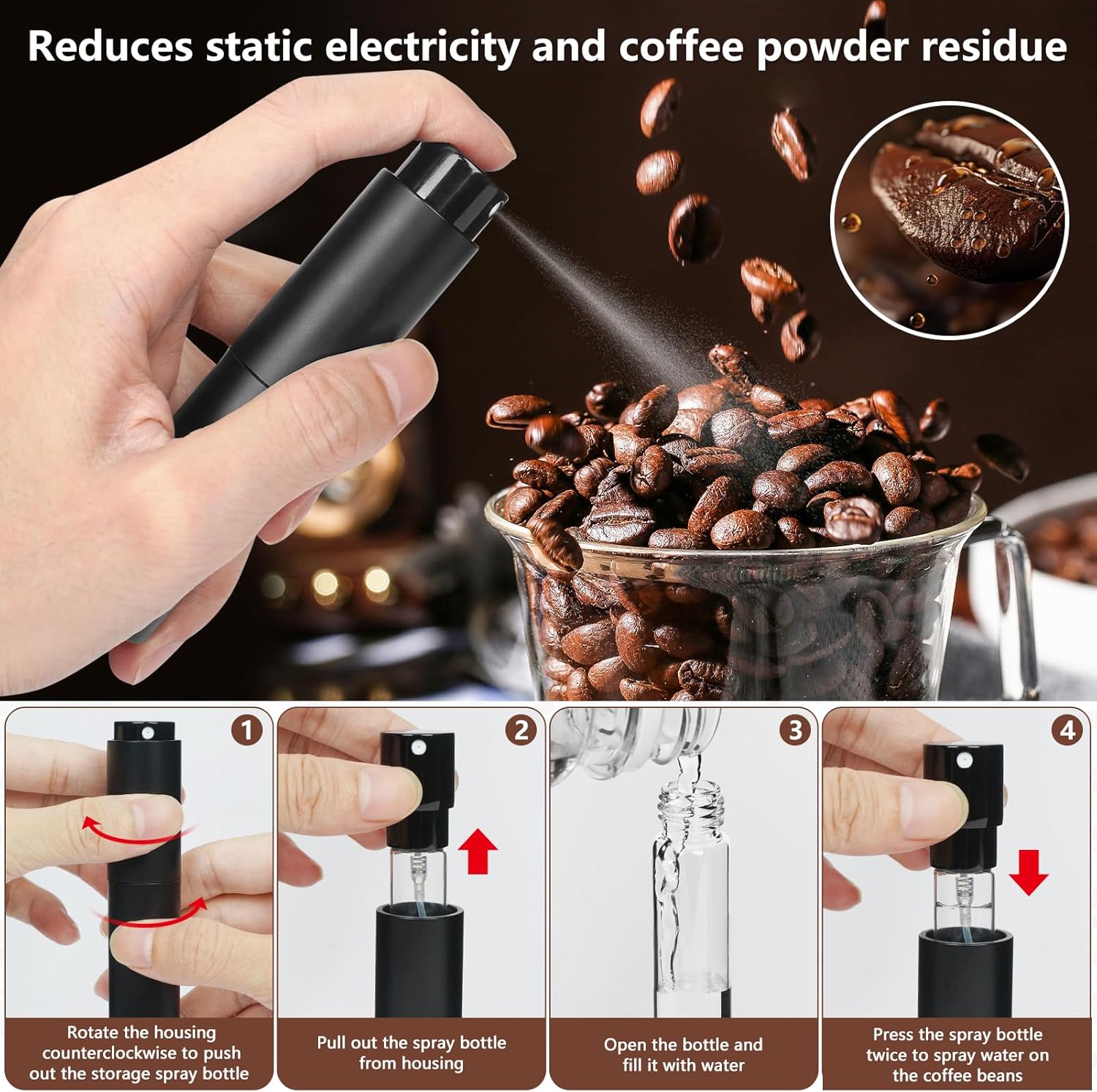 Espresso Distribution Tool & Coffee Bean Spray Bottle: Our espresso coffee stirrer is made of food safe 304 stainless steel with high elasticity and durability. It can help you break up coffee clumps to distribute the coffee evenly in the filter, maximizing extraction and minimizing channeling to get a more even extraction and better espresso. With one or two sprays before grinding which will reduce static in some degree, more durable spray head and high-quality glass bottles to make your RDT more durable.