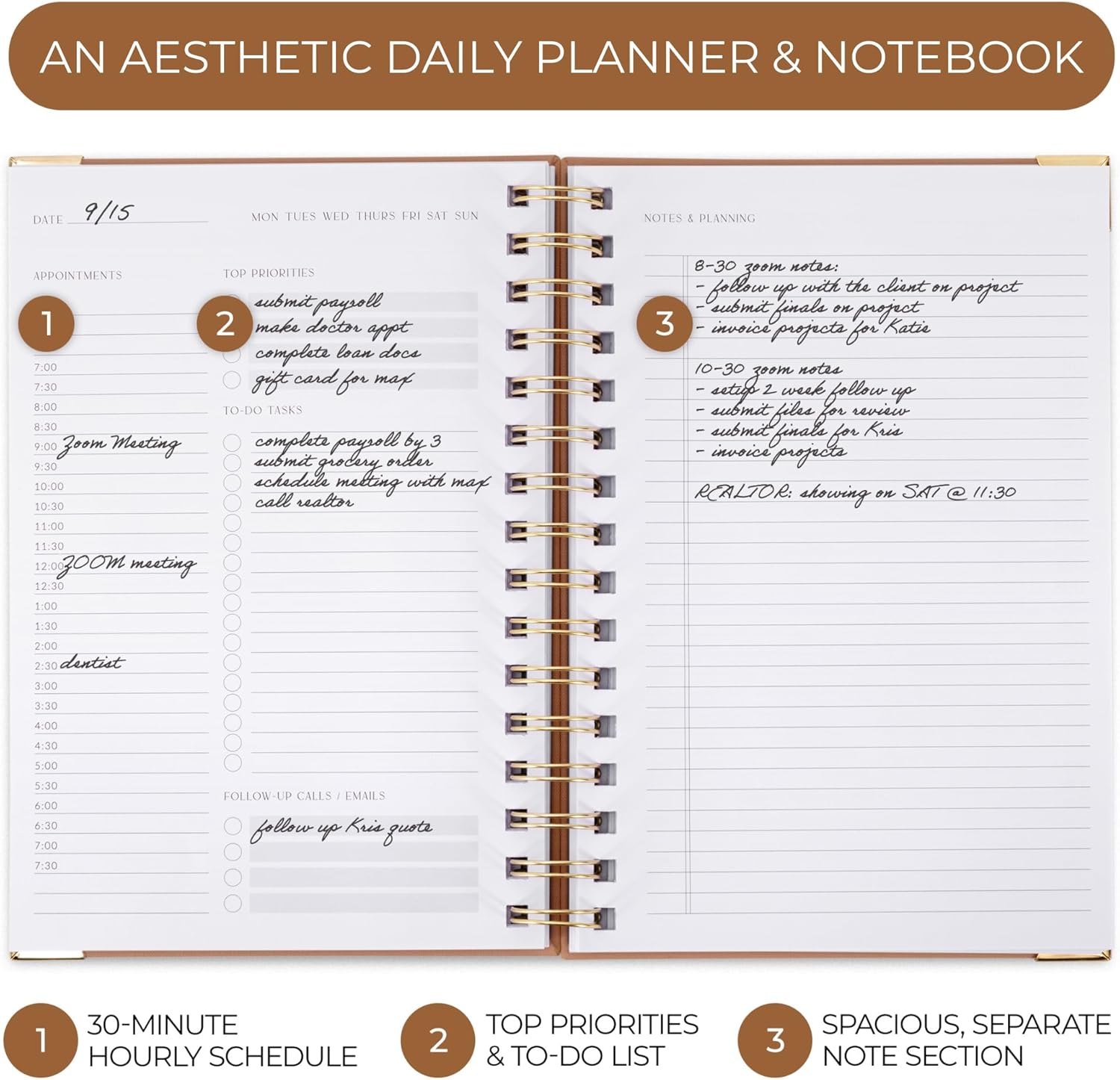 Aesthetic Daily Planner And Notebook With Hourly Schedule – Aesthetic Spiral To do List Notepad For Work/Home to Organize Tasks And Appointments – Stylish School/Office Supplies Book For Women
