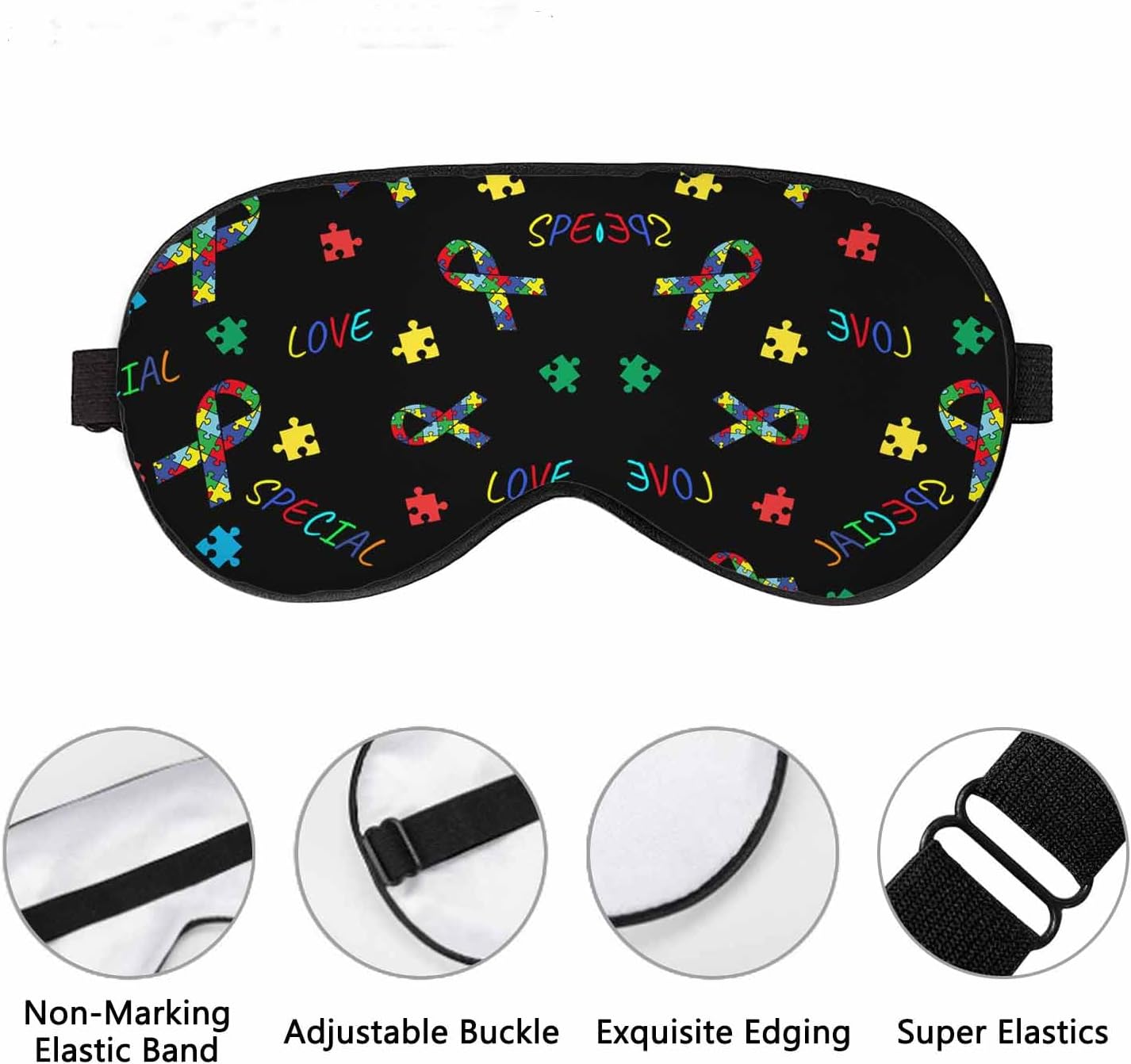 Awareness Day Sleep Eye Mask Autism Ribbon Men Women Sleep Mask with Adjustable Strap Eye Cover Eye Shade for Travel, Nap,Meditation