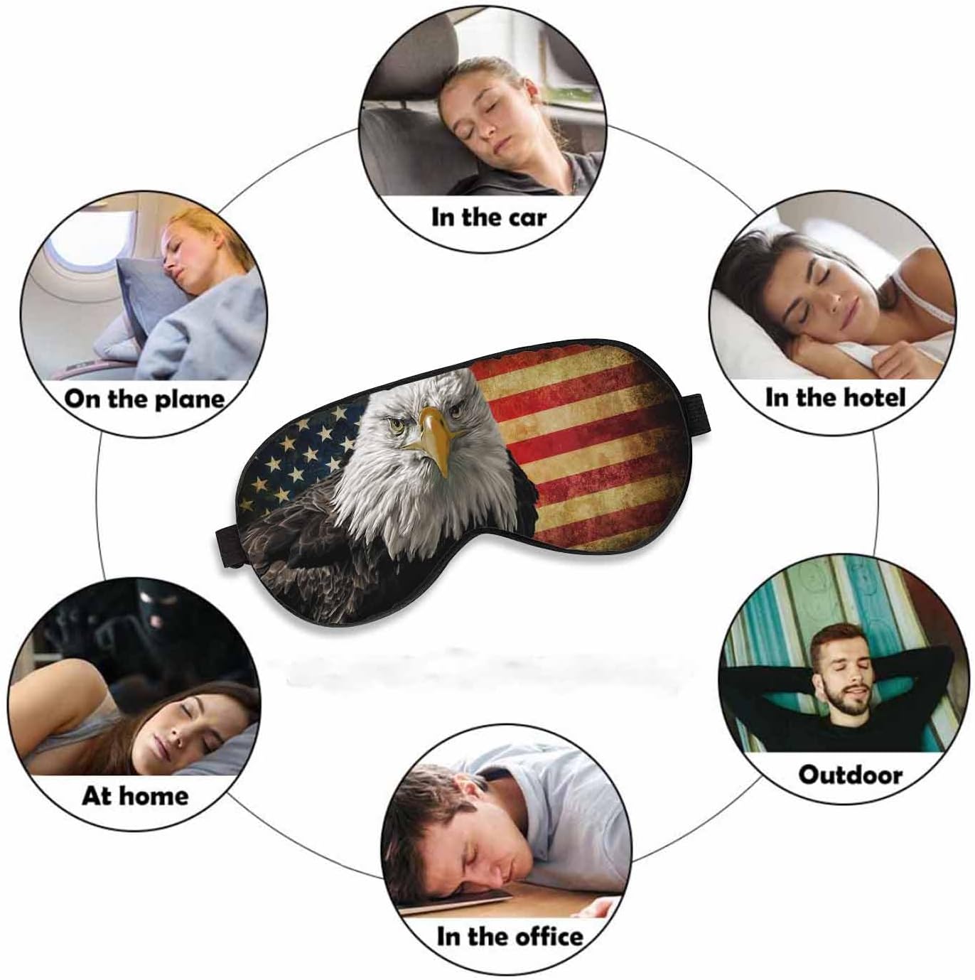 Bald Eagle Sleep Eye Mask Vintage Hipster American Flag Men Women Sleep Mask with Adjustable Strap Eye Cover Eye Shade for Travel, Nap,Meditation