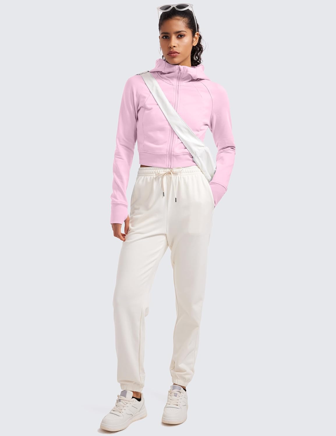CRZ YOGA Womens Fleece Zip Up Cropped Hoodie Workout Jacket Athletic Casual Long Sleeve Sweatshirts with Thumb Holes