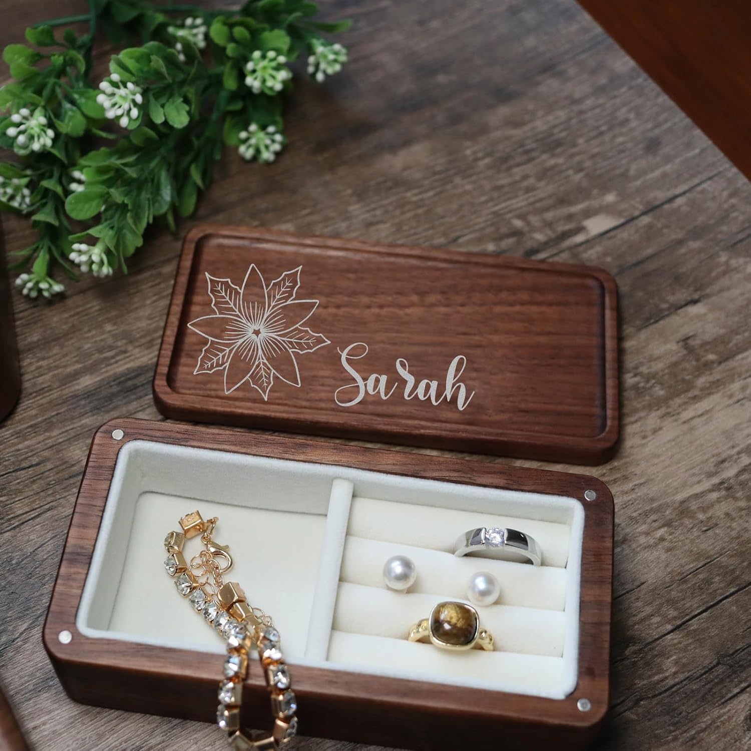 8 reviews for Custom Wooden Jewelry Box Personalized Jewelry Organizer Travel Case With Name and Birth Flower for Women, Mom, Bridesmaid Gifts (Mini Rectangle)