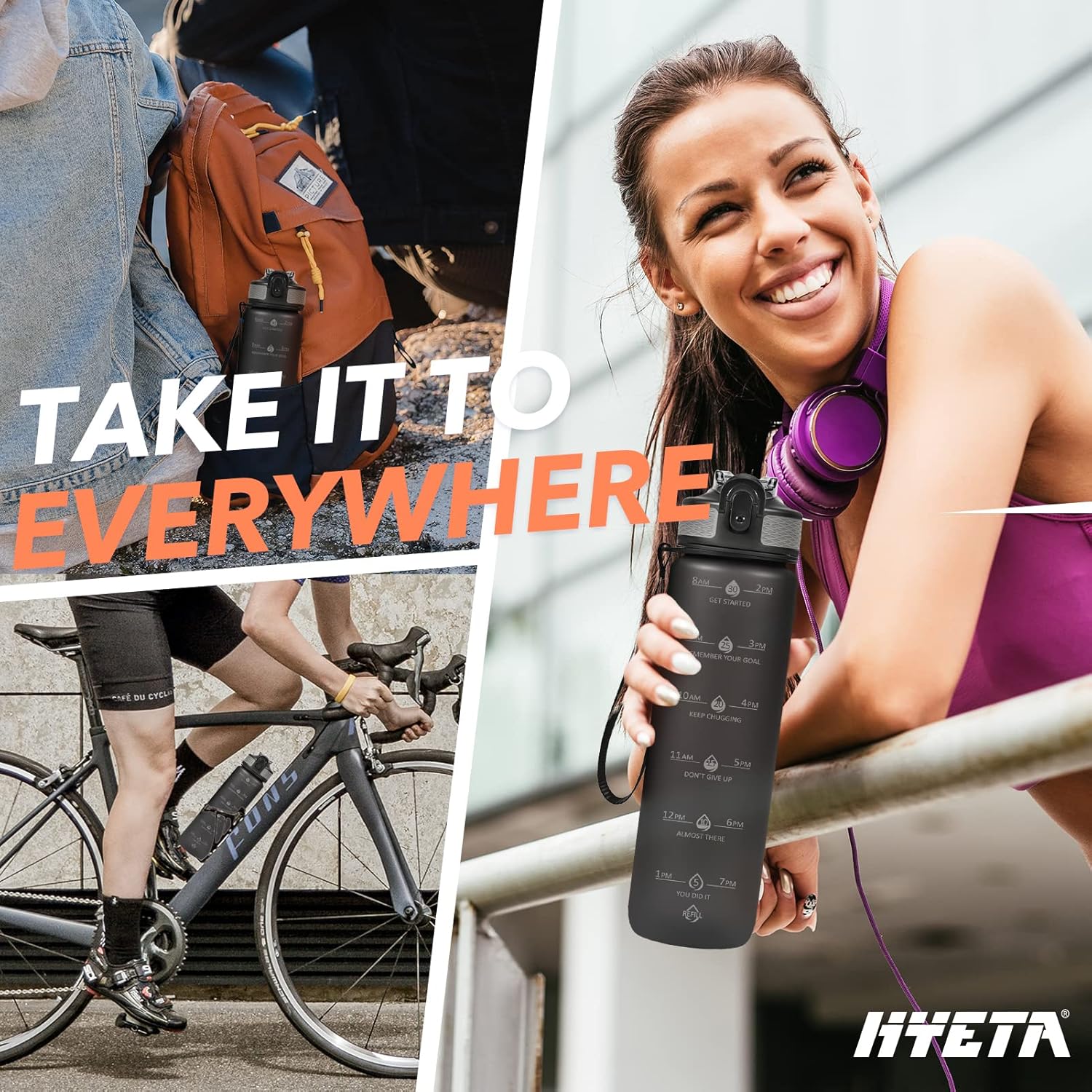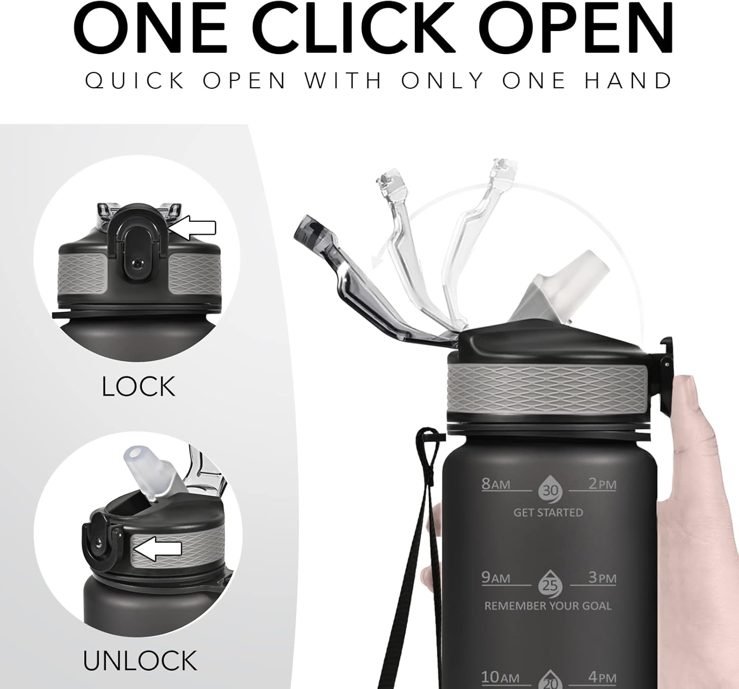 Motivational Quote and Time Marker: 32 oz motivational water bottle with times to drink and inspirational quotes, it’s great for tracking your water intake and stay on top of your hydration goals.