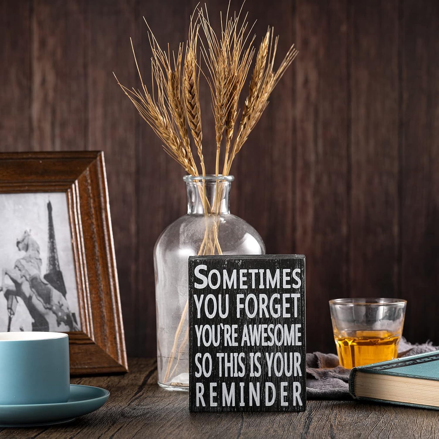 Jetec Inspirational Wood Box Sign 5 x 4 Inch Home Office Motivational Decor Mother’s Day Gift with Saying Sometime You Forget You’re Awesome So This Is Your Reminder Wall Desk Black Board Funny Decor
