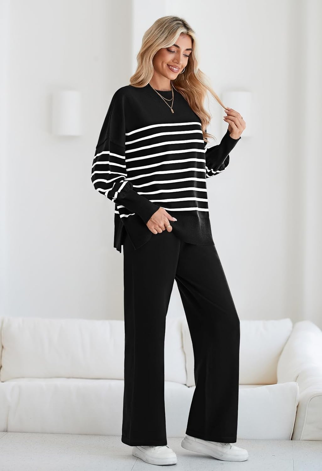 If youâve ever wanted to look stylish while feeling like youâre wrapped in a blanket, the Pink Queen Womenâs 2-Piece Outfits Sweater Set is your new best friend. This lounge set has the perfect blend of comfort and chic style, like if your favorite sweater and sweatpants had a baby and made something fashionable. Whether youâre binge-watching your favorite show or running errands, this set has you covered, and youâll look fabulous doing it.Pros:1. Comfortable and Soft The knit pullover top and wide-leg pants are insanely comfortable. Itâs like wearing a cozy cloud, but one that makes you look cute, too. The fabric is soft and breathable, so you wonât overheat even when lounging all day.2. Chic, Relaxed Look The loose fit gives you that effortlessly chic vibe, like you just threw something on and walked out the door, but it still looks put-together. Itâs the ultimate balance between comfort and style.3. Versatile You can rock this set on the couch or out for brunch. Pair it with some cute sneakers or sandals, and youâve got a winning look without trying too hard.4. Great Value For the price, you get a super stylish, well-made set that can be dressed up or down. Itâs one of those rare finds that make you feel like you scored a deal.Cons:1. Sizing Issues The fit is relaxed, but some might find the sizing a bit off, especially if youâre in between sizes. Itâs best to check the sizing chart and maybe size down if you want a more fitted look.2. Wrinkles Easily The knit fabric tends to wrinkle after being washed, so youâll need to give it a quick steam or iron before wearing it for a smooth, crisp look.3. Not Super Warm If youâre looking for something to wear on the coldest days, this set might not keep you as warm as a thicker sweater. Itâs perfect for milder weather or lounging indoors.Overall, the Pink Queen 2-Piece Sweater Set is a fantastic choice for anyone who wants to look chic without sacrificing comfort. Itâs stylish, comfortable, and versatile. Itâs ideal for days when you want to feel cozy, but also look like you tried. Perfect for lazy weekends, casual outings, or just lounging in style.