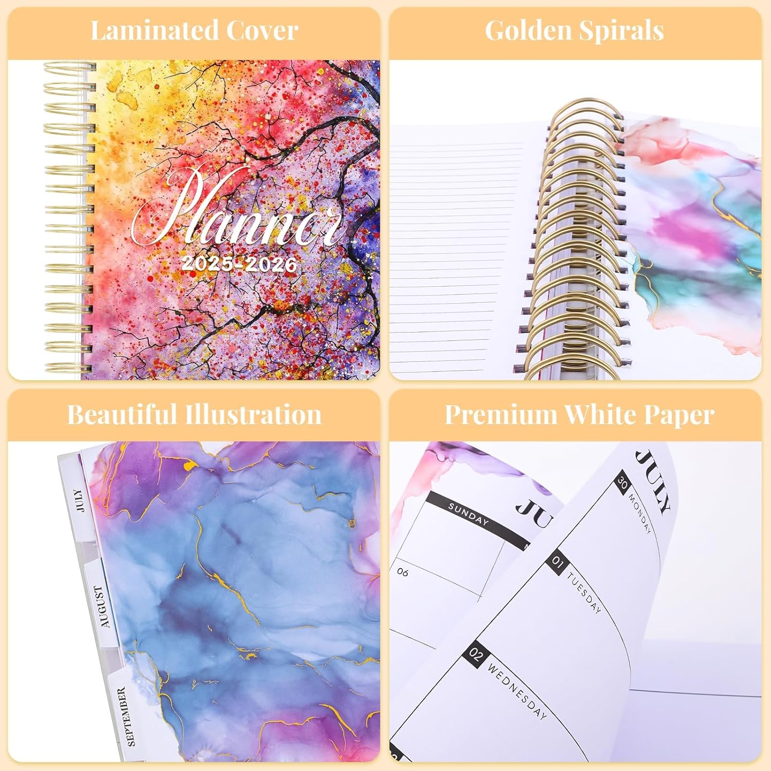 Versatile Accessories: Each planner comes with PVC bookmarks for easy page tracking, 175 transparent sticky notes with ruler for organization, 216 planning stickers for creativity, and a double-sided inner pocket for customized storage. A special academic planner gift you can share with your friends and family