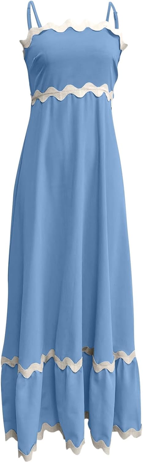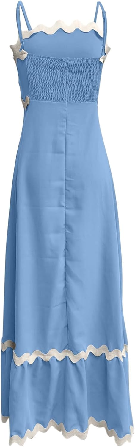 Summer Dresses for Women 2024 Trendy Casual Strappy Flowy Loose A-Line Smocked Maxi Dress Beach Vacation Sundresses