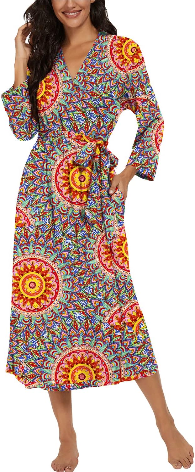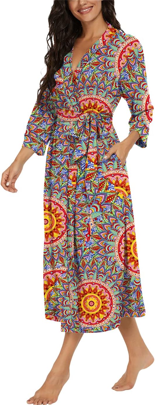 13 reviews for VINTATRE Women Kimono Robes Long Knit Bathrobe Lightweight Soft Knit Sleepwear V-neck Casual Ladies Loungewear