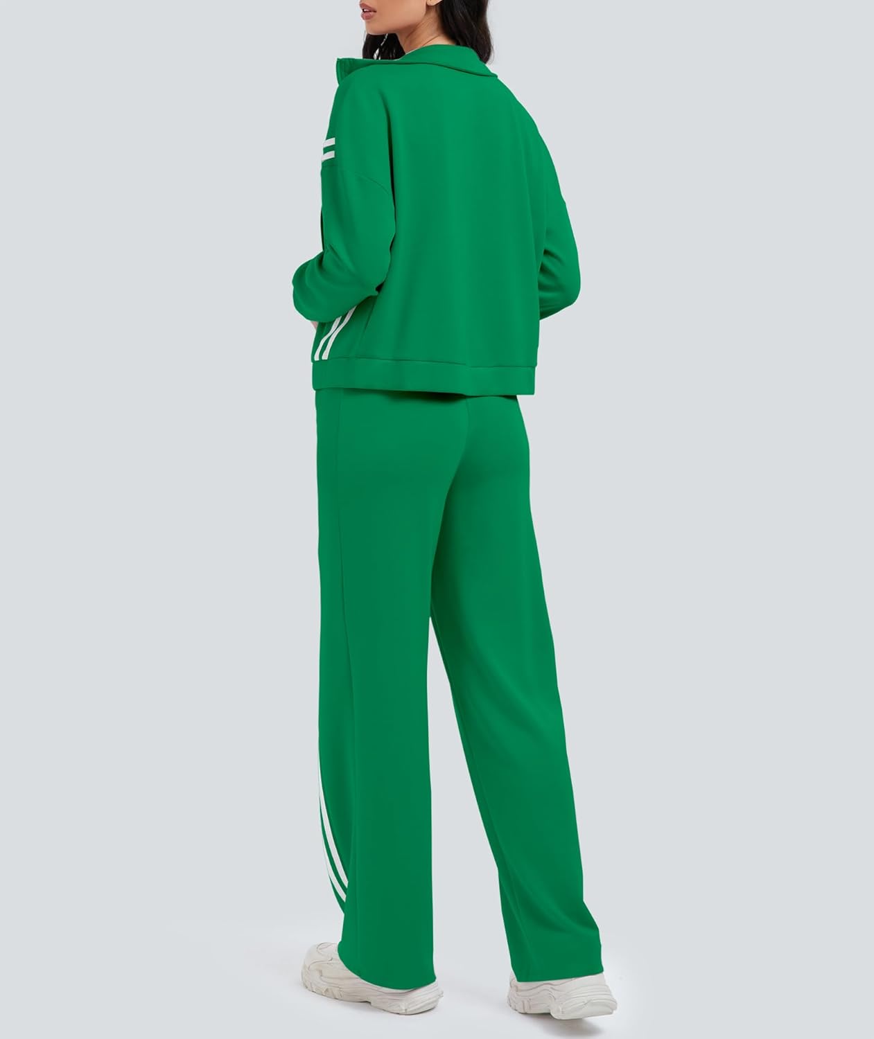 Two Piece Tennis Outfit Mock Neck Sweatshirt High Waist Wide Leg Pants Sweatsuit